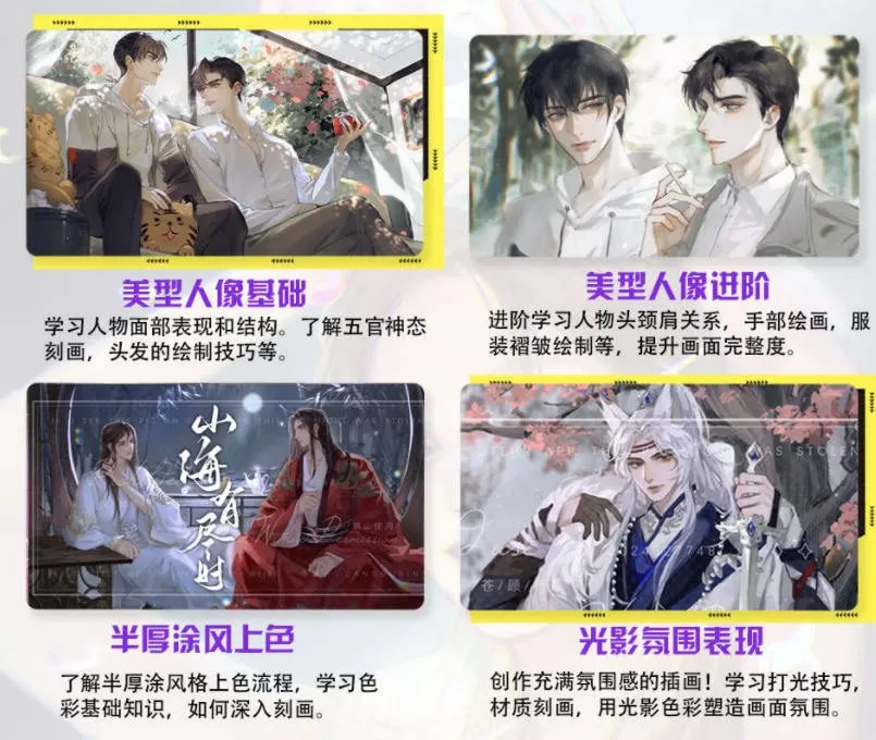 学习人物面部表现和结构。了解五官神态刻画,头发的绘制技巧等。