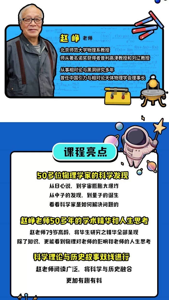 用科学理论与历史故事双线进行,从日心说,讲到宇宙膨胀大爆炸;从中子的发现,讲到量子的诞生;我们将一起走进科学发现的现场,用物理学视角看世界。