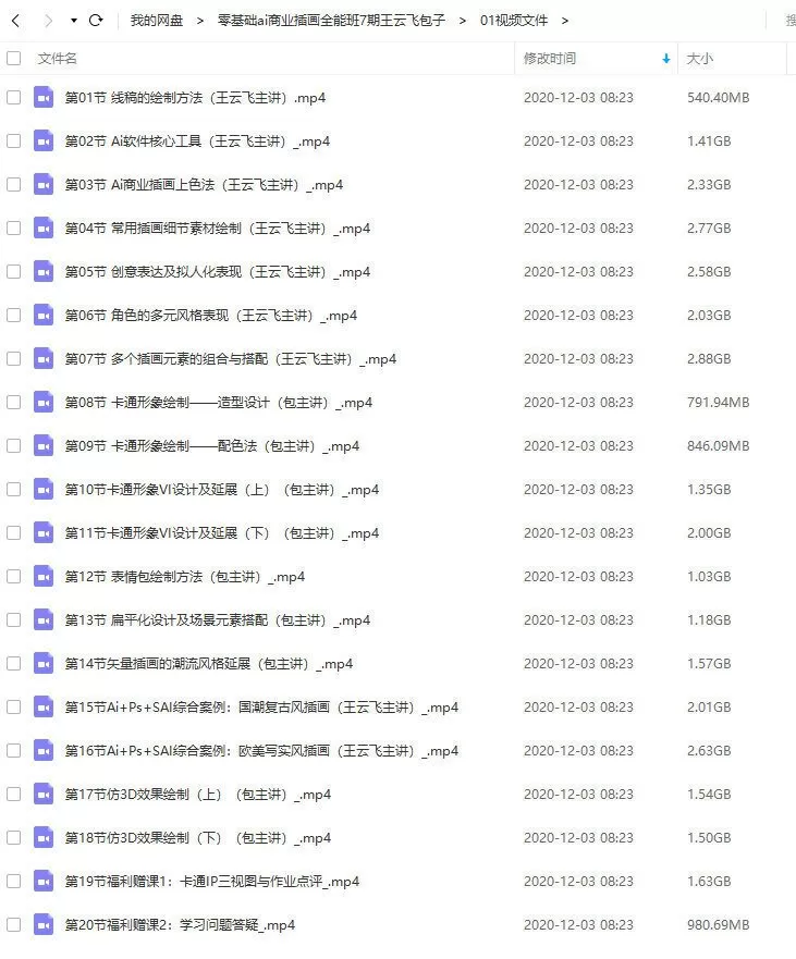 | 第七期包子王云飞零基础AI商业插画全能班2020年新课(画质高清有素材) |