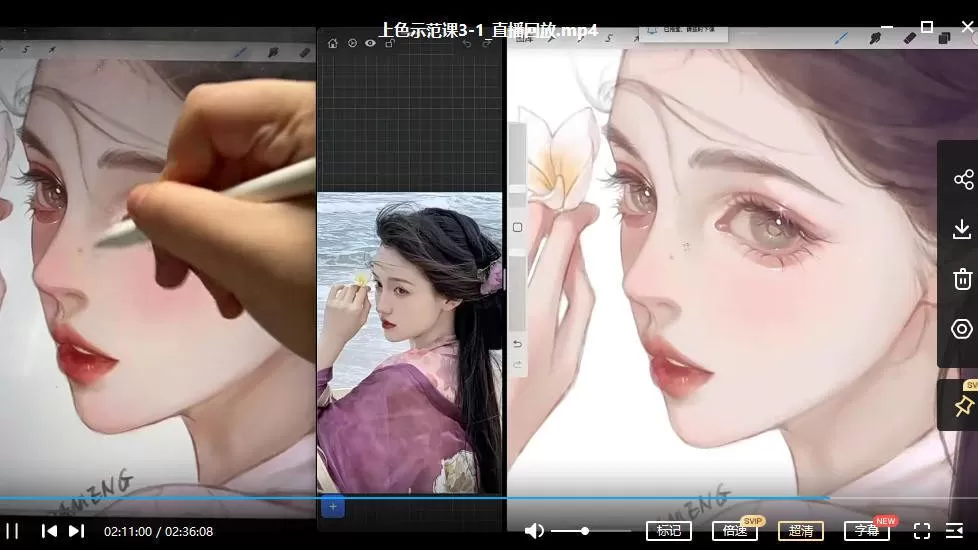 狄大萌2022人像上色ipad插画课第八期【画质还行有笔刷和素材】