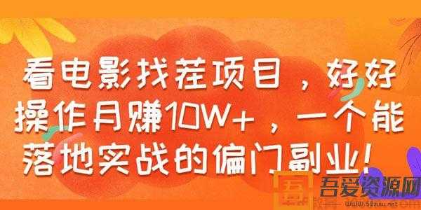看电影找茬项目,好好操作月赚10W+,一个能落地实战的偏门副业!【视频教程】