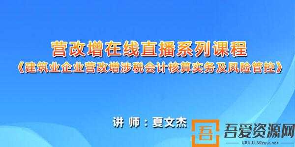 夏文杰-建筑业企业营改增涉税会计核算实务及风险管控课程 百度网盘 VIP会员免费下载。