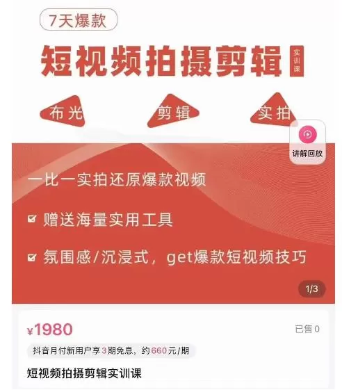 7天爆款短视频拍摄剪辑实训课,从0开始1:1实拍还原爆款视频