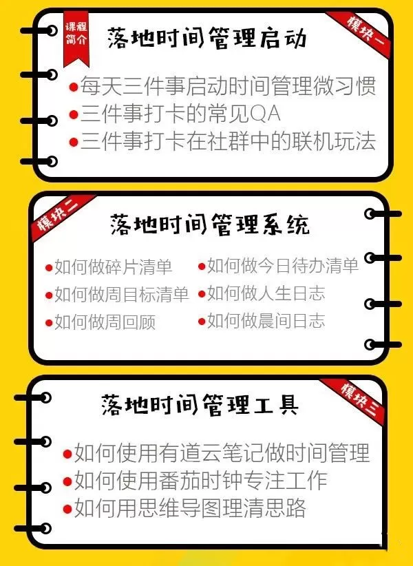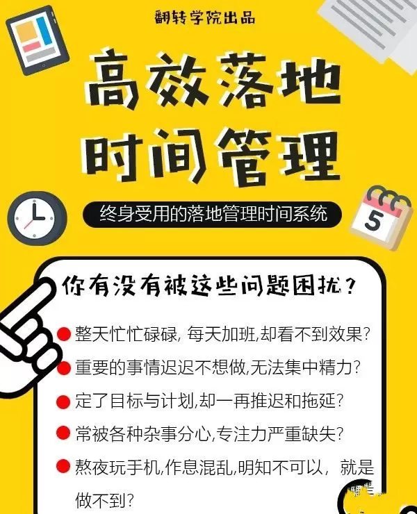 我们以解决实际问题为目标,完全从实用性出发,系统讲授时间管理、效率提升的方法、步骤、流程和要领,结合软件工具落地,拒绝空讲大道理。