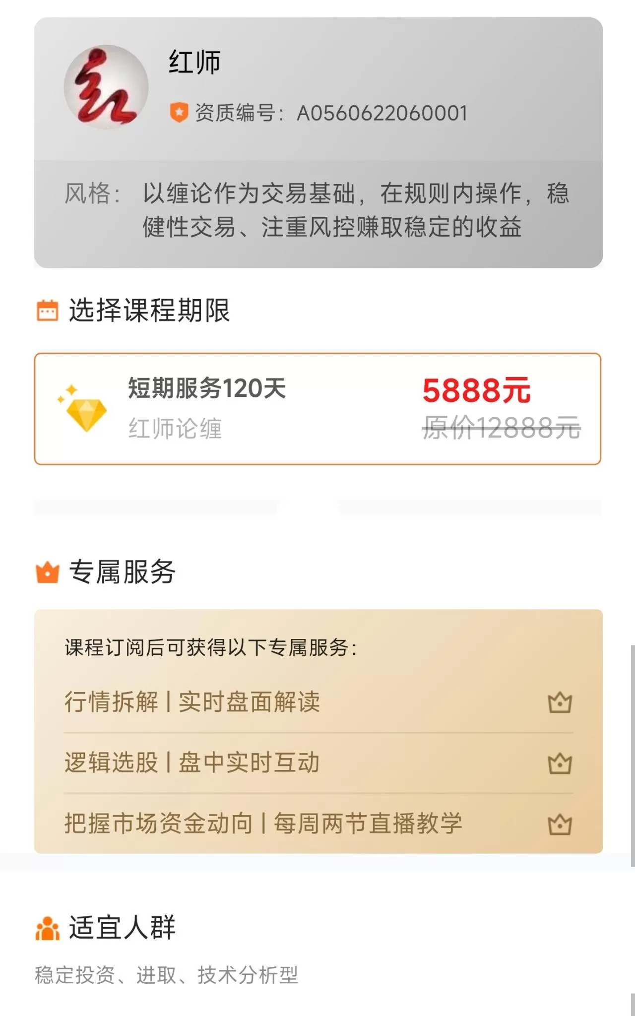 本次课程,可以帮助已经有缠论基础的学员更进一步地以专业投资者的角度去领悟和解析市场,提高操作的成功率和形成更稳定的交易体系;也更能帮助新手小白正确找到理解市场的方式和交易的进阶之路,无需担心基础如何,哪怕0基础的投资者你也可以轻松掌握完整的课程体系。