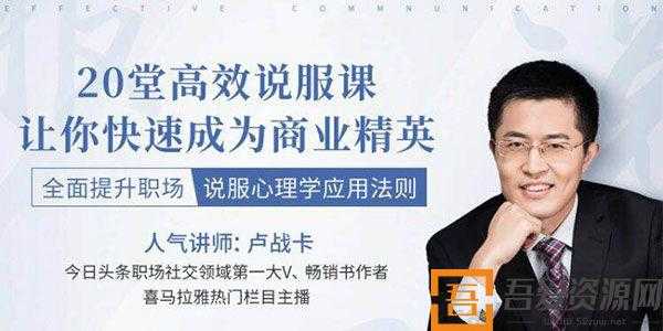 卢战卡-全面提升职场说服心理学应用法则 20堂实战说服课 百度网盘 VIP会员免费下载。