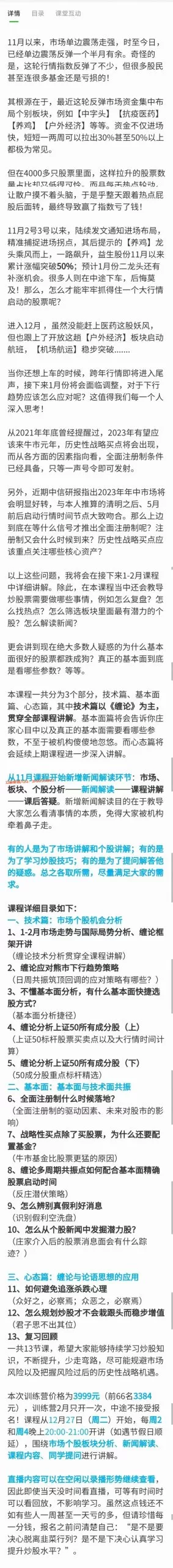 本课程一共分为3个部分,技术篇、基本面篇、心态篇,其中技术篇以《缠论》为主,贯穿全部课程讲解。基本面篇将会告诉你庄家心目中以及真正的基本面需要看哪些参数,不至于被机构傻傻地忽悠。而心态篇将会延续上期课程进一步深入讲解。